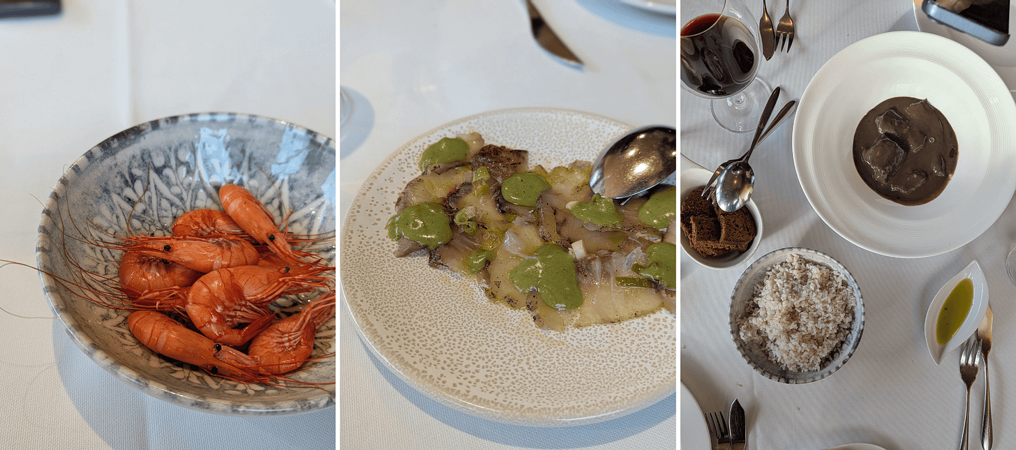 O Ferro - ¿Vais a O Ferro? Id a O Ferro. Por las patatas chips del aperitivo, pero también para sentarte y comer bien. El apartado carnaca está destinado probablemente más al público médico del hospital cercano, pero hay más de dónde comer. Un puñado de camarones, el sashimi de lubina curada en sal, azúcar y café (tan improbable como rico) y la mejor lamprea que haya comido nunca (además servida por ración). También es probablemente la última que coma -porque se acaban y porque por esta misma razón ya no es ético comerlas. Pero a O Ferro puede seguir yendo.