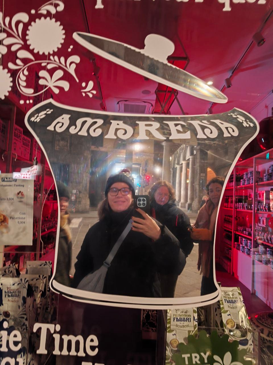 Y por esa cara sin una mueca de sorpresa hay que darle un premio a la encargada de la tienda Fabbri de Strada Maggiore. Por eso, y porque atiende de maravilla y si hubiéramos podido le habríamos comprado la tienda entera.